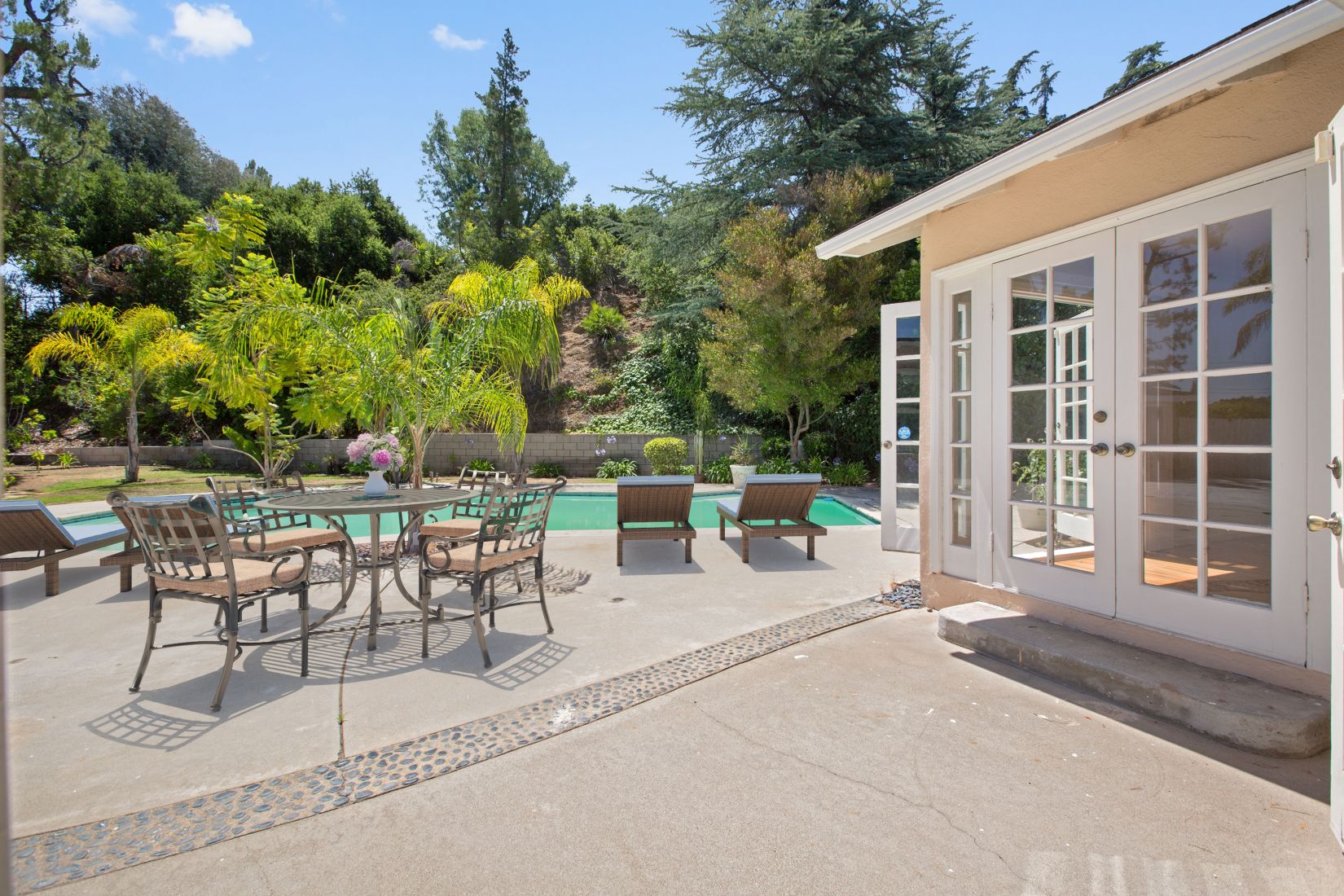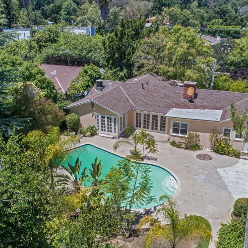 Single-story Mid-Century Ranch home in Encino’s Blue Ribbon Lanai school district. Set above the street, up a private driveway, on a secluded, private 15K sqft lot. This characteristic SFV home features 3 bdrms and 3 bths. The open floor plan & architectural integrity, indoor/outdoor flow will take your breath away! Highlights include high ceilings with exposed beams, a gourmet kitchen w/granite countertops, breakfast nook, original hardwood floors and stone fireplaces. Plenty of room to expand! Enjoy outdoor entertainment in the big backyard w/a resort-like pool and patio. This home has convenient access to all the best area private schools, quick jump to the West side, Valley and the 405 freeway. This perfect Sth-of-the-Blvd home in an idyllic setting awaits you and your family. Don’t miss this one!