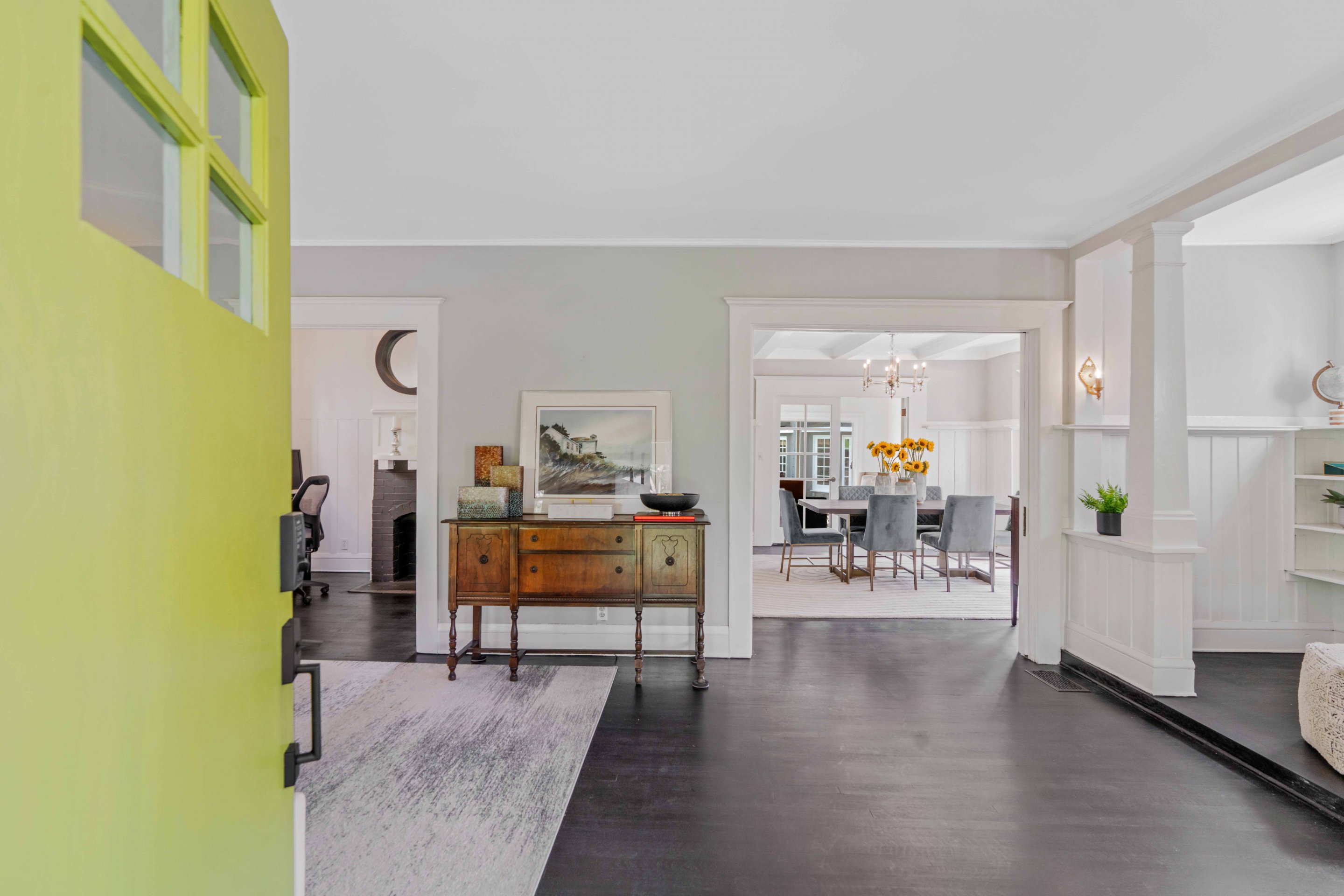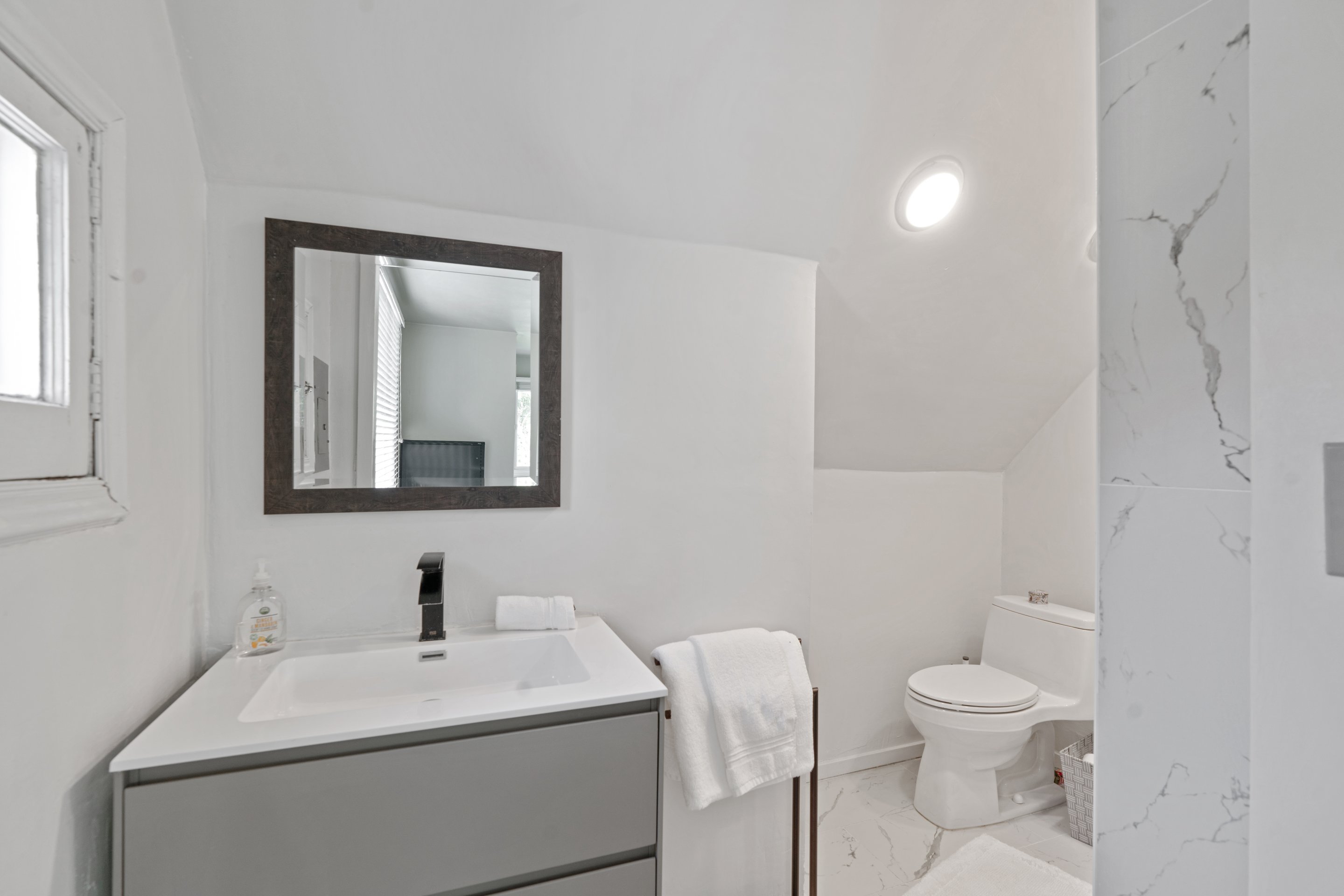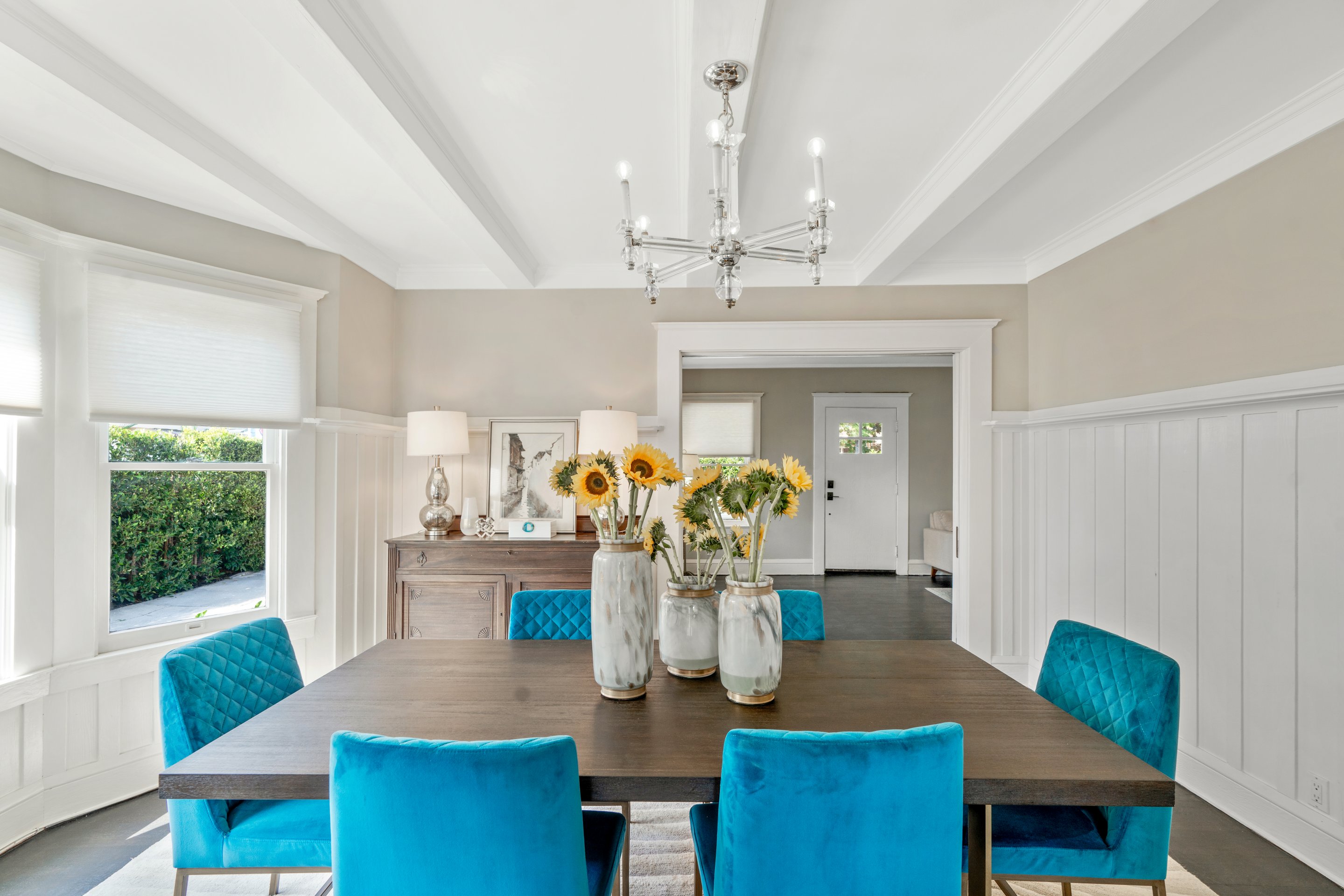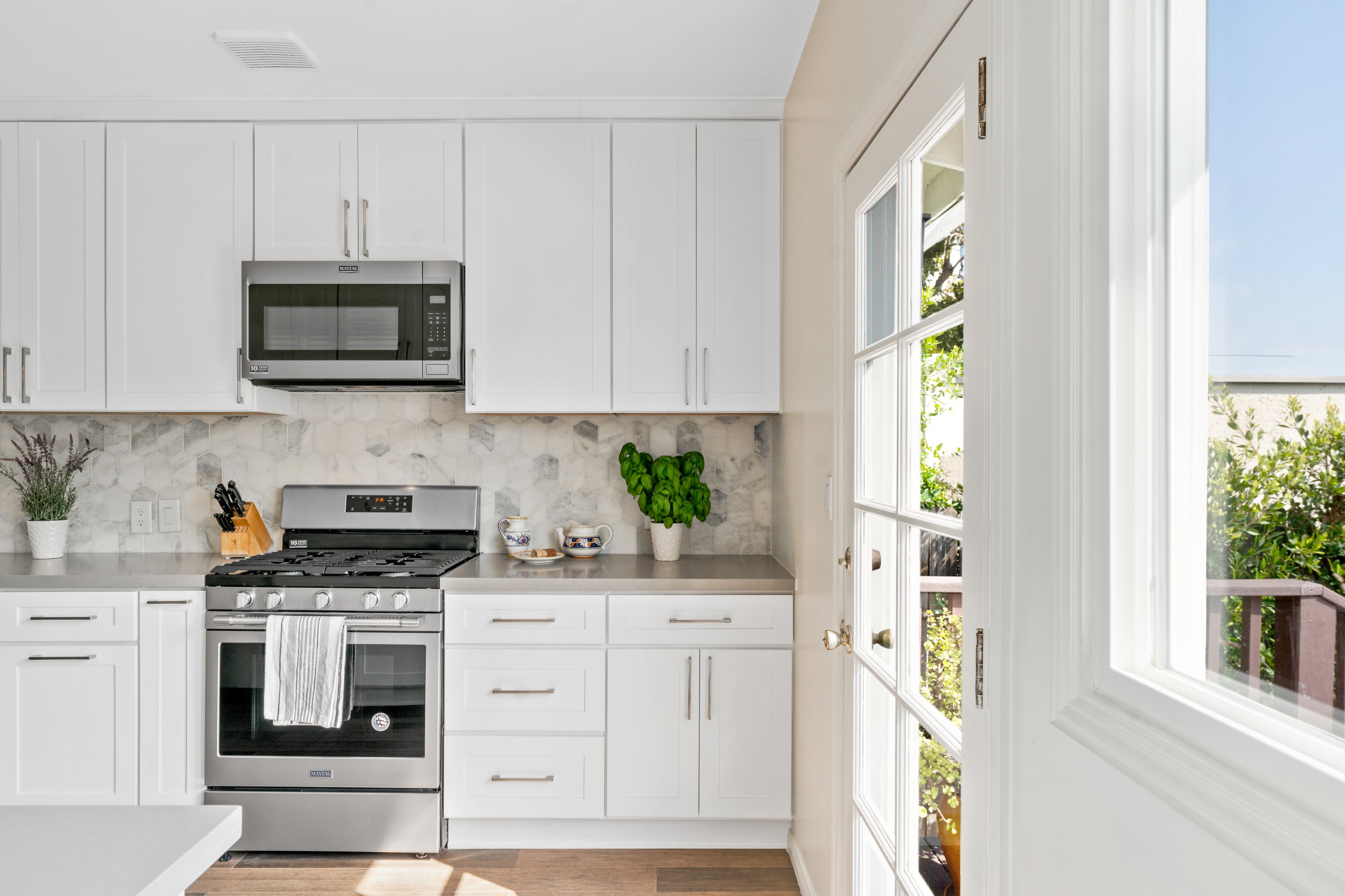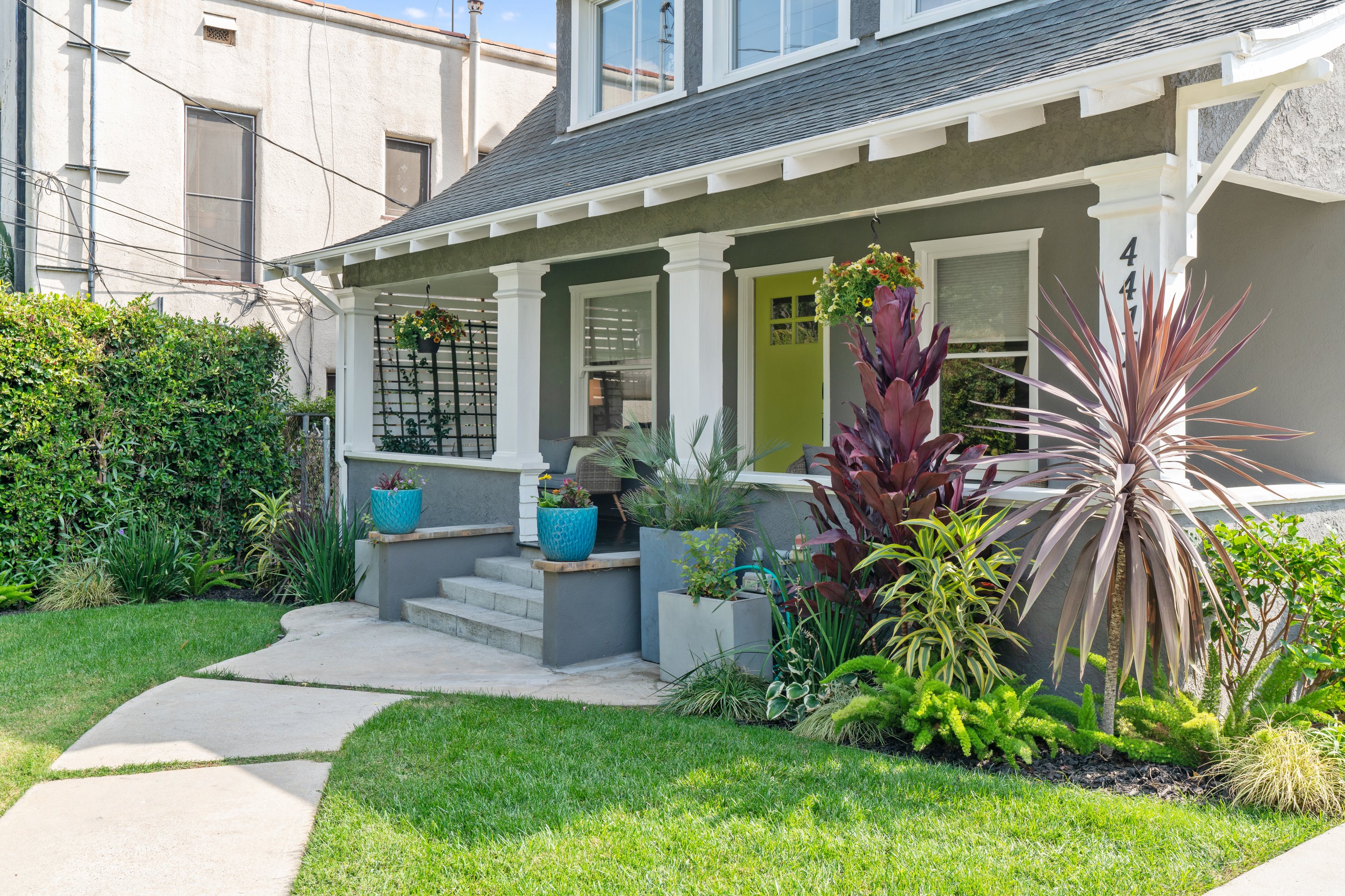 In Los Feliz, hidden behind mature landscaping and wrought iron fence/gate, sits this 1910 California Craftsman with original architectural details such as refinished hardwood floors, millwork, windows, and wall sconces still intact. The kitchen has recently been updated with Quartzite countertops and a Carra marble backsplash. The plate rail in the dining room sets the tone for a beautiful dinner party in the spacious and formal room replete with the original pocket doors. The large living room off the covered front porch has an abundance of natural light thru the picture windows. Three bedrooms upstairs, 2 with ensuite bathrooms one with a claw foot tub. The garage has been converted to an 879 sq ft 2 story guesthouse with a kitchenette, bedroom, and 2 bathrooms. Views of the landmark Hollywood sign and the Griffith Observatory from the guest house Juliet balcony. The large backyard has a pool and spa with multiple outdoor areas to relax and dine