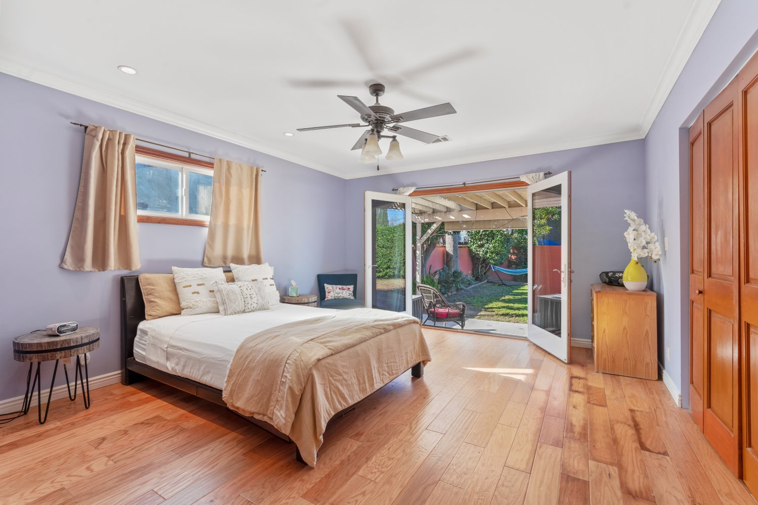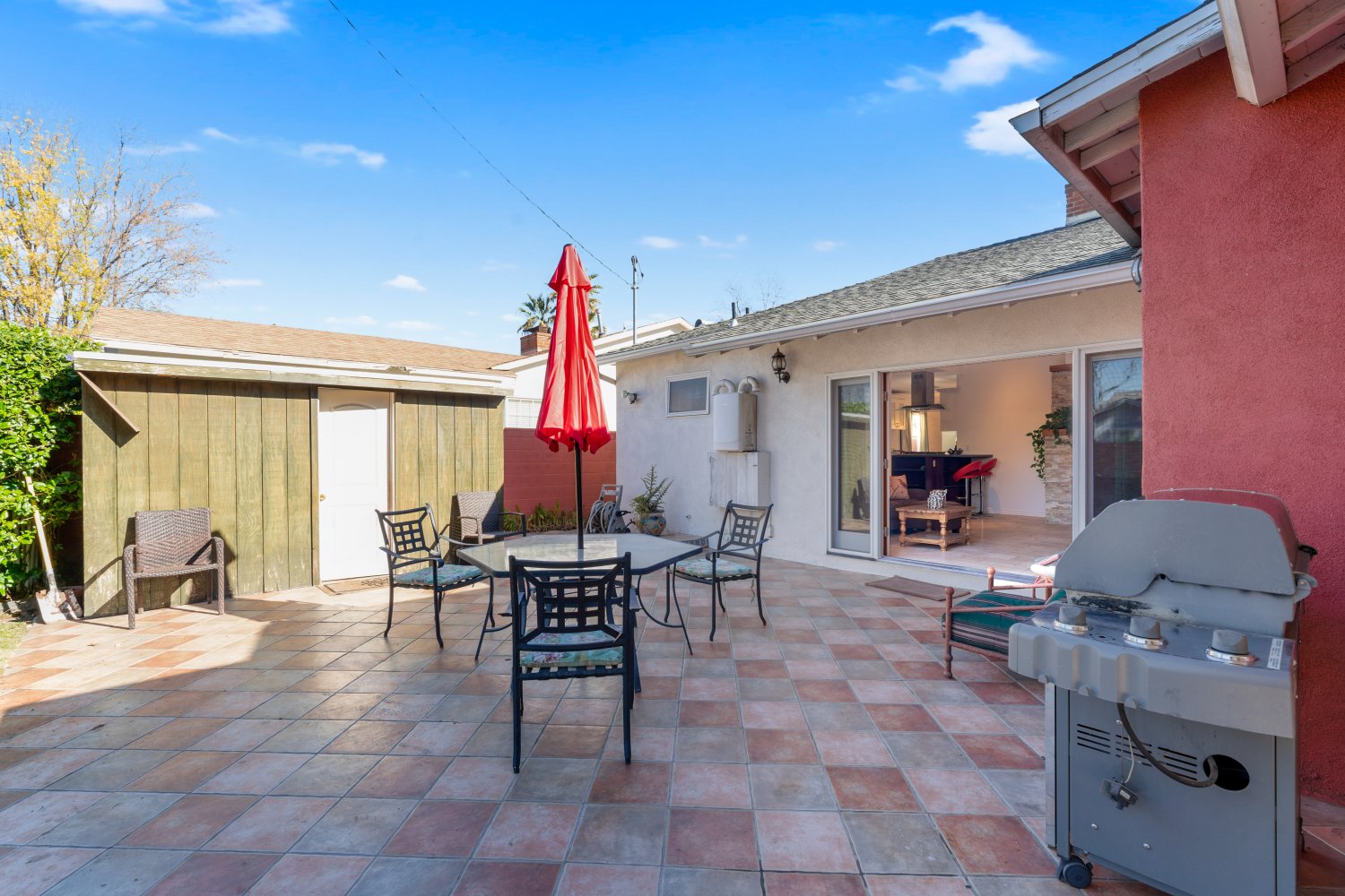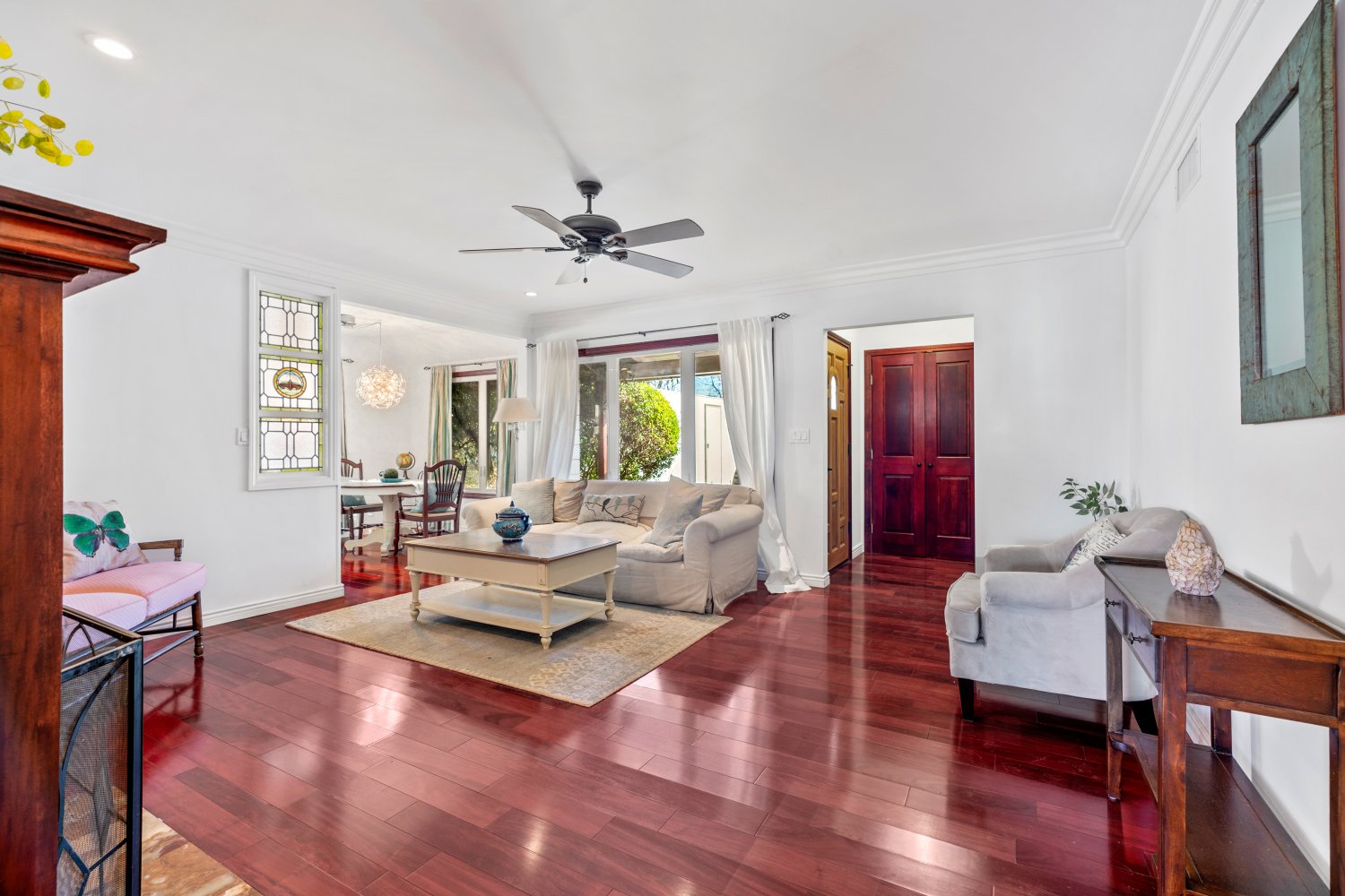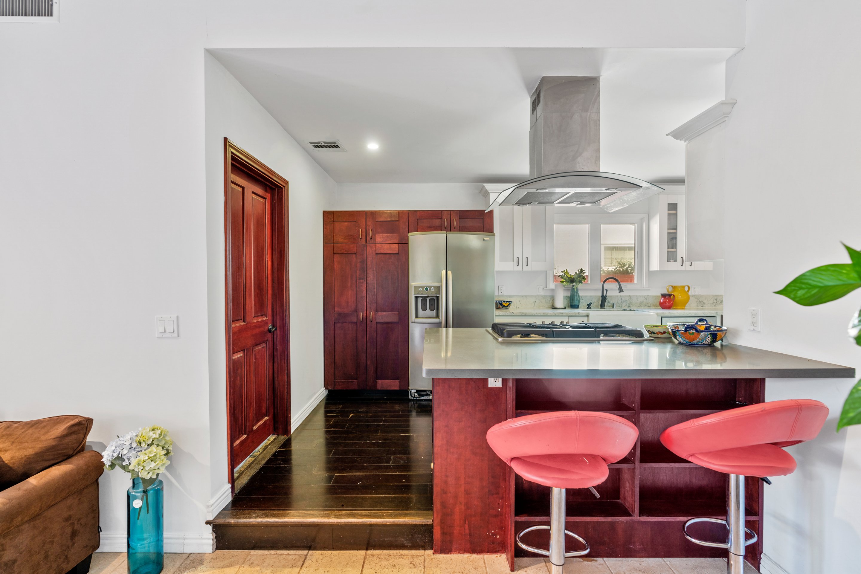 Awesome 3 bed, 3 bath house, almost completely rebuilt in 2013, with private attached studio for home office/music studio/workout room, plus small kitchenette & bathroom, & french doors leading to private front yard. Both living room and family room have fireplaces. Newer kitchen with marble countertops, double wall convection oven, cooktop, pantry + plenty of storage space with breakfast bar & granite island. Laundry with utility sink. Vaulted ceiling in family room, with French doors leading to large patio. Master suite has 2 sets of closets, jetted bathtub, double sinks & french doors leading to private patio. New plumbing, new electrical, new wiring & newer tankless water heater. Hardwood floors throughout. Family room has travertine flooring. recessed lighting, central air & heat & ceiling fans, marble tiles, avocado & orange trees & grassy yard. Plenty of street & driveway parking. Close to Westfield Mall & shopping & dining. One block from bike path - easy access to freeways.